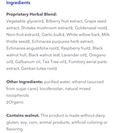 - Contains Biocidin® Botanical Blend, made with 99% organic ingredients