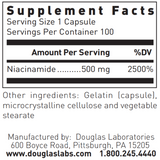 Niacinamide provides 500 mg of niacinamide per capsule. Dietary niacin can be obtained from niacinamide, an amide of niacin, which is typically well tolerated and not associated with causing a “flushing” reaction.