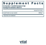 Inositol is a compound found in a wide range of tissues, with higher concentrations in the heart and brain. Inositol Powder may be used to help support and maintain positive mood.* It promotes healthy neurotransmitter metabolism and helps reduce daily stress and occasional anxiety.* Inositol Powder may be beneficial in the transport of cholesterol out of the liver to help maintain already normal-range cholesterol levels.* It may also help maintain healthy blood sugar levels and ovarian function.* Vital Nutrients’ inositol supplement is offered in a powder form which readily dissolves in water and has a slightly sweet taste.*